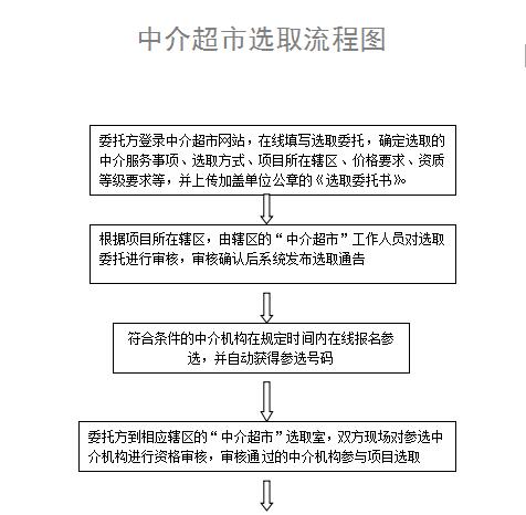 2. 项目审核。中介超市对项目委托进行审核,审核不通过的,项目单位根据反馈的原因重新修改,再上传委托,审核通过的,由中介超市确定选取时间地点,并在超市网站公开发布选取公告。